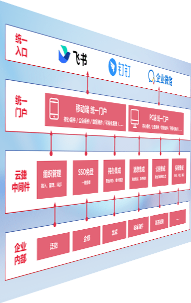 对协作平台提供支持服务,,支持企业应用与协作平台对接,,,包含组织同步、、、消息集成、、待办集成等。。支持目前主流的协作平台:钉钉、、企微和飞书。。。